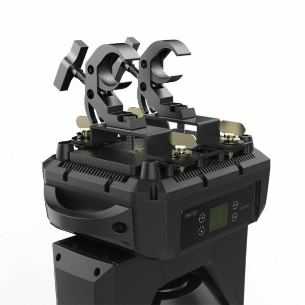 AQUARIUS, an compact design IP66-rated outdoor professional moving beam fixture with a Philips MSD Platinum 12R LL discharge lamp (up to 6,000-hour lifespan) that produces a razor-sharp 2˚ beam. With robust construction and IP66 protection, the AQUARIUS is perfectly suited for either indoor or outdoor use. Its durable aluminum die-cast housing protects it from dust, sand, moisture, and liquids, making it ideal for use in all situations from dusty deserts to rainy fields. Perfect for festivals and outdoor events, as well as installation in open-air applications and other outside entertainment spaces, this ground-breaking fixture offers extended operational life and reduced need for maintenance, thanks to its sealed casing design.