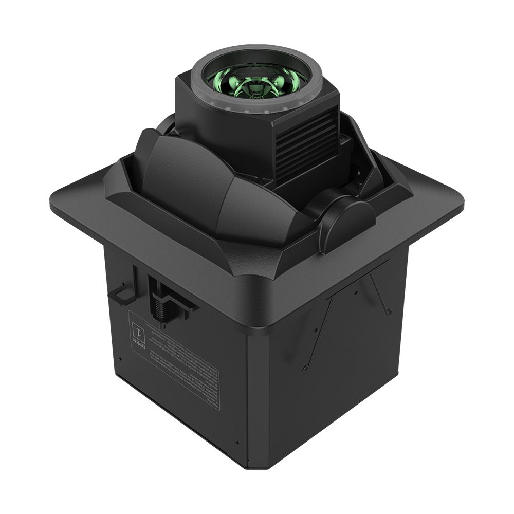 EYES CC is an effect light suitable for small performance venues such as bars, clubs, weddings, TV stations, and theaters.The design of the lamp is compact and light, and the shape is flexible and changeable; with a circular LED lamp ring, which integrates point-by-point control, circle control, strobe, dimming, surface light and other functions, and a unique ultra-short-distance XY-axis structure design, which can pass the XY-axis The rotation angle can achieve the dynamic effects of drawing, 3D space, uniform RGBW color mixing system and rainbow effect, which provide lighting designers with unlimited creative fun. It can also be built into the ceiling. It is suitable for various entertainment venues such as bars, KTVs, hotels, banquet halls, etc.