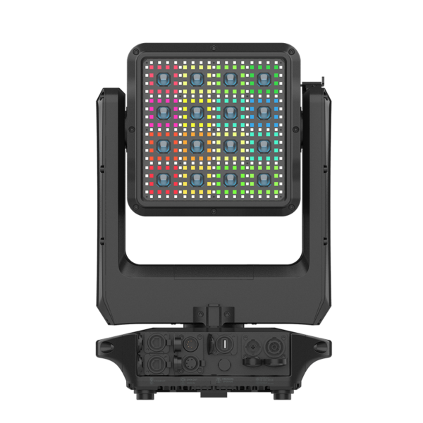 De achterkant van de kop is voorzien van een pixel/strobe-sectie met 160 x 3W CW-LED’s en 192 x 0,5W RGB-LED’s, plus een beam-sectie met 16 x 10W CW-LED’s. Voor extra creativiteit is de PULSAR PLUS S2 uitgerust met ACME’s gepatenteerde elektronische frost-systeem, toegepast op zowel de pixel- als de 10W beam-sectie. Daarmee schakel je naadloos van scherpe beams naar zachte looks.