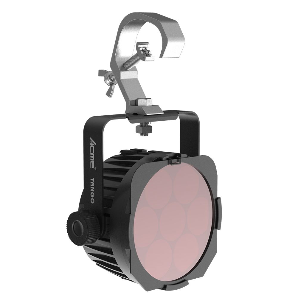 ACME TANGO. Equip with 7pcs 15W RGBW LED, the 2128lm total output, tool-free buckle design, within a 2kg weighted light, Tango is the next choice to light up the bar, club, and other entertainment places. Especially when hanging many units onto the truss frame, it can highlight the contour of the entire stage, and also creates a large-scale and outstanding washing effect. Smooth color mixing, variable strobe speed, fixed sharp beam, and an optional color frame, all benefits are at hand for you to control. Let your stage be in TANGO.