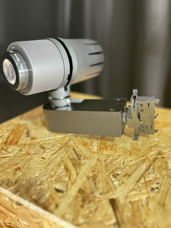 De Goboservice Symp goboprojector is uitgerust met een trackadapter en kan daarmee in een spanningsrail bevestigd worden. Zo is er geen losse kabel nodig en kun hem eenvoudig verplaatsen.